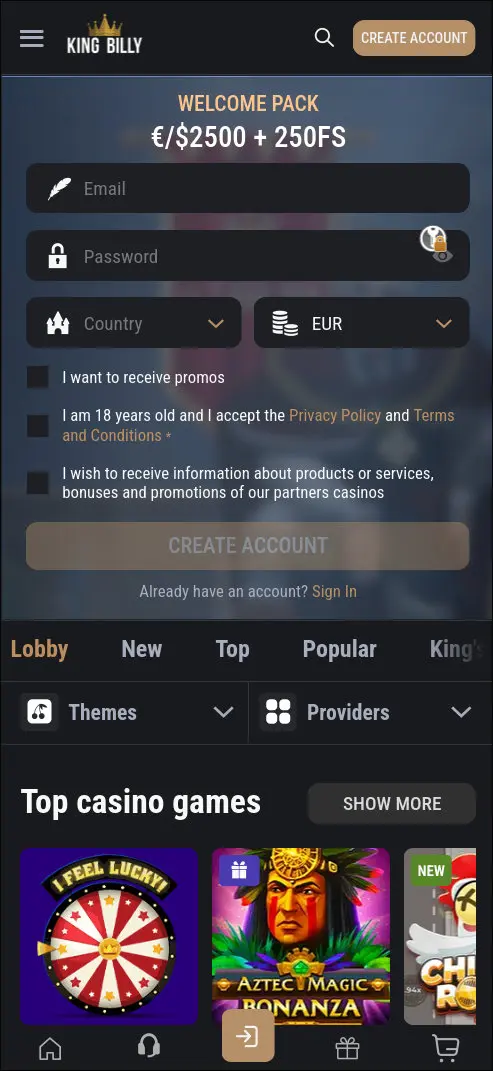 Join the email list to get updates when King Billy releases a genuine no-deposit code or free spins promo.